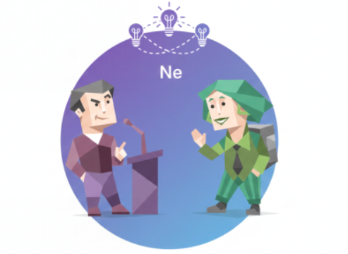 Ketika Ne menjadi fungsi dominan, seperti pada tipe ENFP (Campaigner) dan ENTP (Debater), kehidupan mereka adalah eksplorasi tanpa henti terhadap kemungkinan. Mereka adalah arsitek ide-ide dan katalis perubahan. ENFP, dengan Ne Dominan mereka yang terhubung erat dengan nilai-nilai dan orang lain, mengarah pada eksplorasi potensi manusia dan ide-ide untuk membuat dunia menjadi tempat yang lebih baik atau lebih menarik, antusias terhadap gagasan yang selaras dengan keyakinan pribadi mereka. Sementara itu, ENTP menggunakan Ne Dominan mereka untuk berfokus pada eksplorasi konsep dan sistem logis, menantang status quo dan mencari cara-cara baru untuk memecahkan masalah, seringkali senang berdebat dan menguji batasan ide.